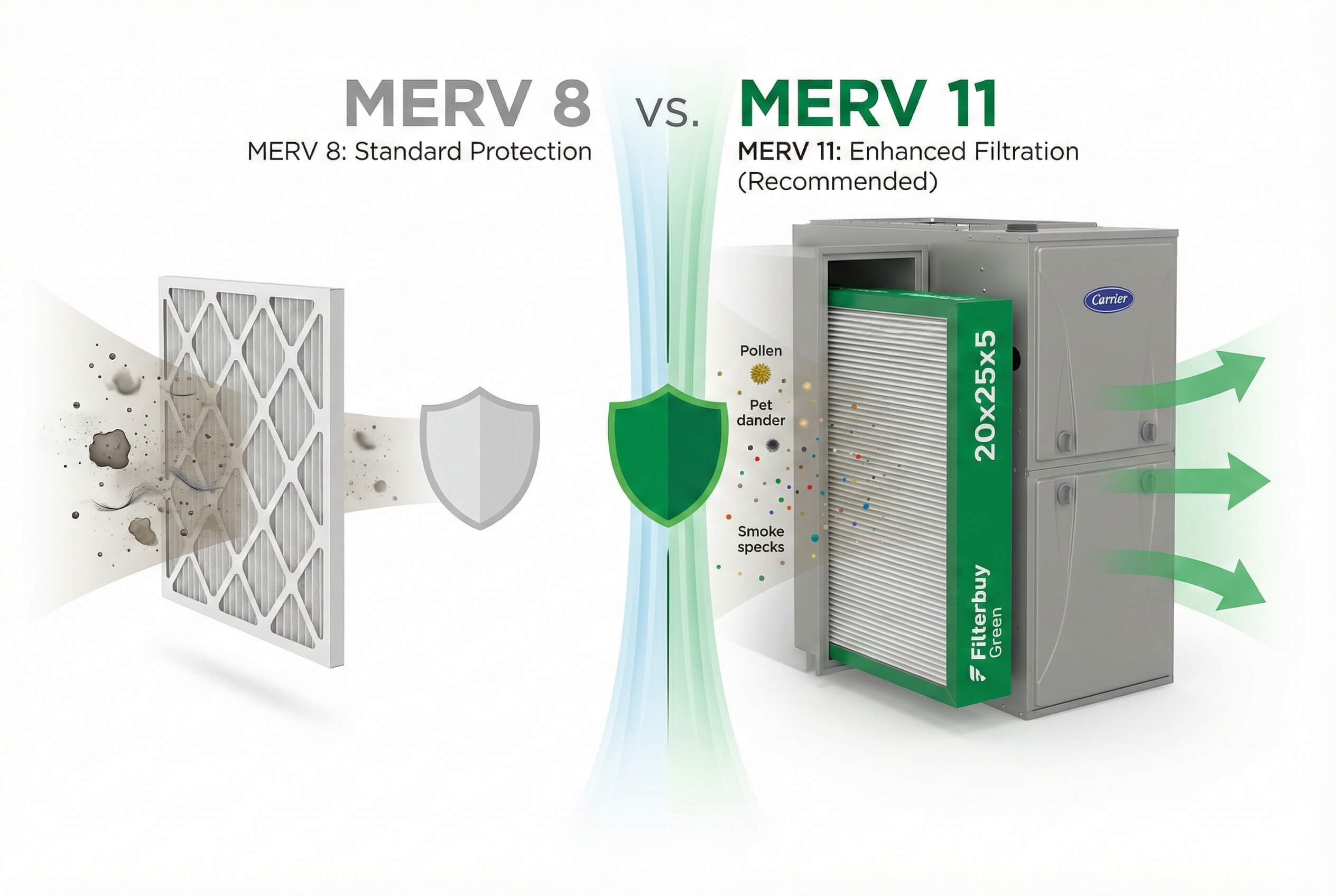 If you're searching for your Carrier HVAC system's ideal filter, you've likely encountered the MERV 8 versus MERV 11 debate. Here's what matters: Carrier officially recommends MERV ratings between 8 and 13 for residential systems, with the right choice depending on your household's specific air quality needs. MERV 8 filters work perfectly for most homes, capturing 90% of common airborne particles like dust, pollen, and pet dander. However, if allergy sufferers live under your roof or you're dealing with smoke, mold spores, or finer contaminants, stepping up to MERV 11 captures 95% of particles—including those smaller irritants that slip through lower-rated filters.